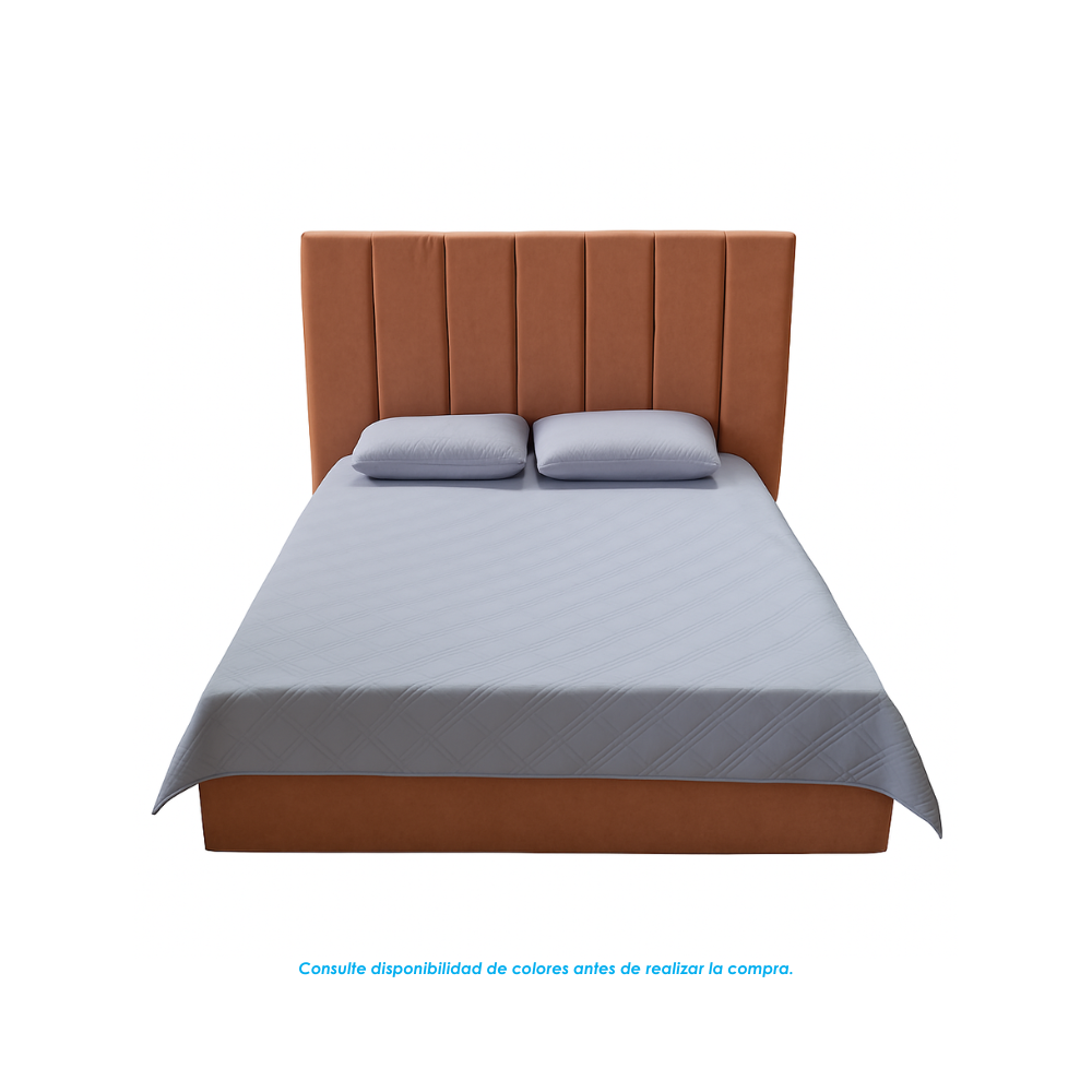 Cama matrimonial, cuenta con diseño moderno y minimalista, respaldar alto, tapizado y acolchado con paneles verticales. Peso soportado 200Kg