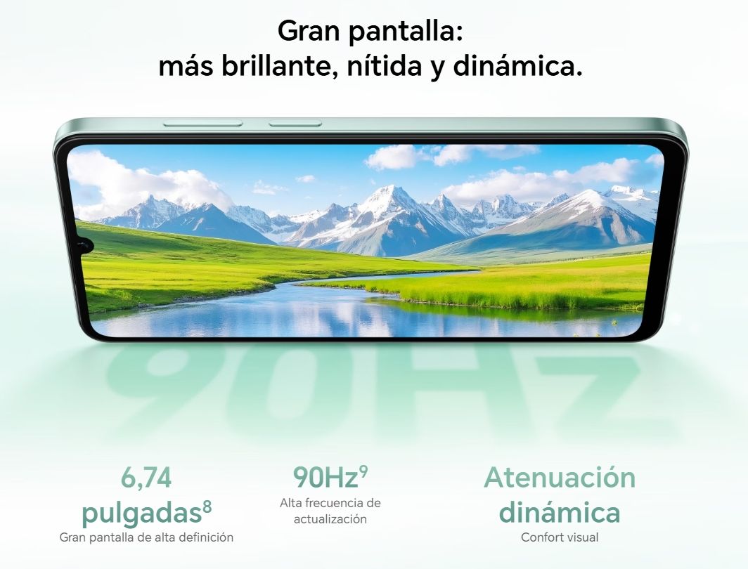 Cámara Principal50 MP con IA, acompañado por una cámara auxiliar ( 13 MP principal + QVGA auxiliar)