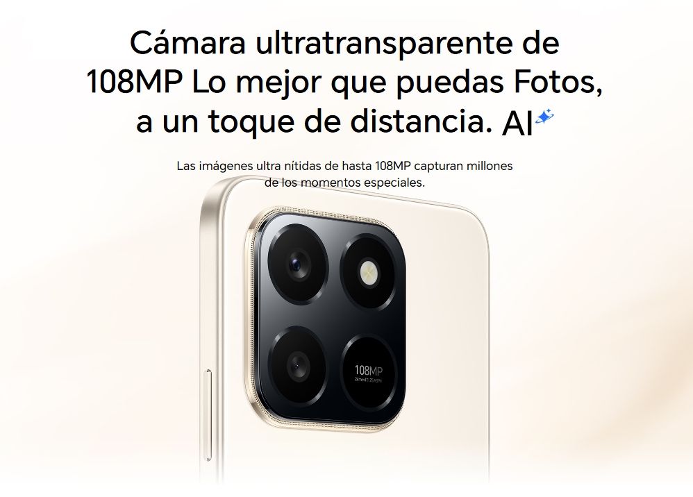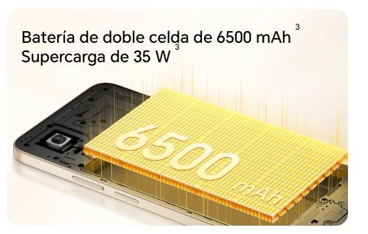 El Honor X7d destaca por su batería de 6500 mAh y carga rápida de 35W, junto con su gran resistencia, gracias a la certificación SGS de caídas y protección IP65. Ofrece una pantalla TFT LCD de 6.77 pulgadas con una fluida tasa de refresco de 120Hz y sensor de huellas dactilares.