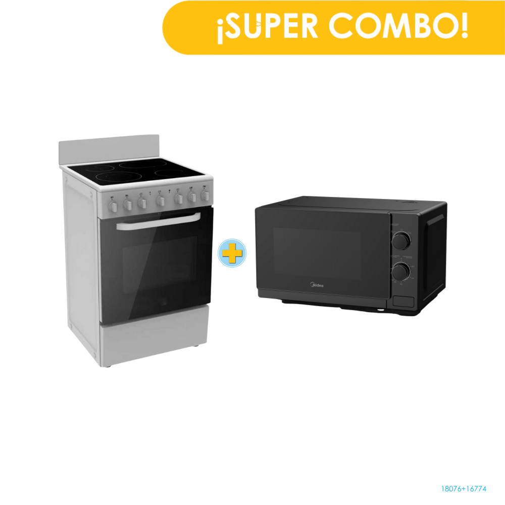 Combo MIDEA Cocina Vitrocerámica MES20FS2BADBG 20" + Horno Microondas MMDP07S2BM