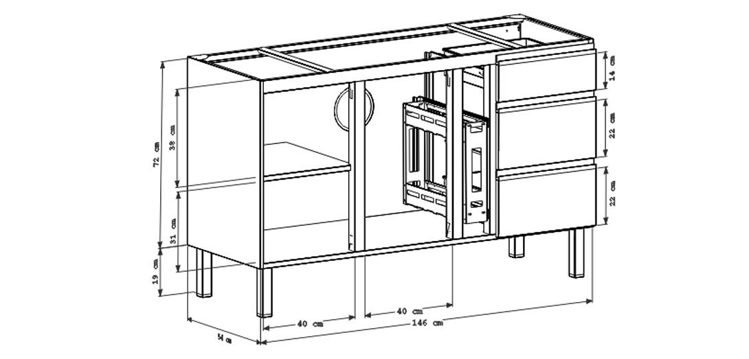 Gabinete de cocina de acero Gaia 150 en blanco y negro - Cozimax