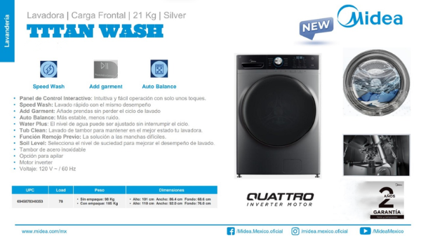 Lavadora Automática MIDEA MH04W45/S-CA 21Kg