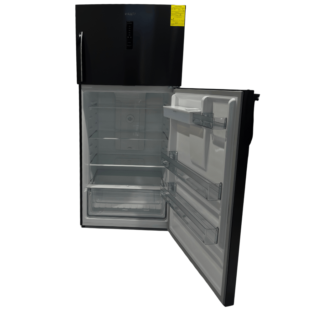 Optimiza el almacenamiento de tus alimentos con esta refrigeradora de gran capacidad de 18 pies, ideal para familias o espacios que requieren mayor almacenamiento. Su diseño elegante en color negro se adapta perfectamente a cocinas modernas, aportando un estilo sobrio y sofisticado.