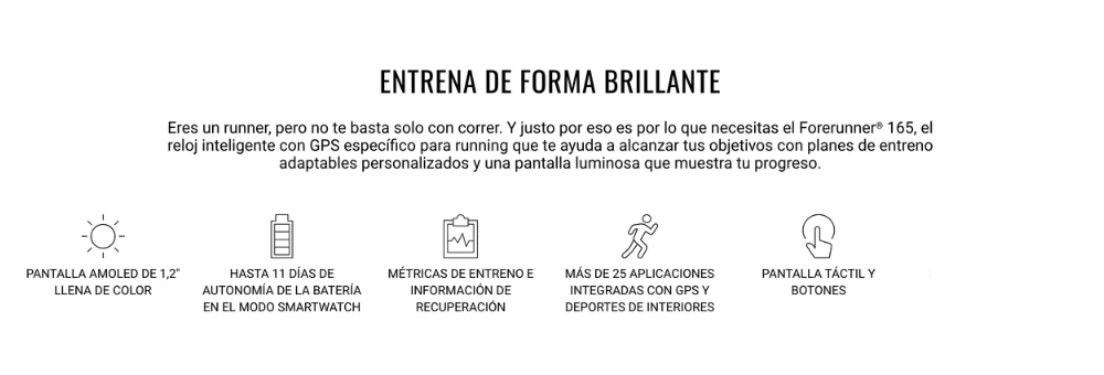 SensoresMonitor de frecuencia cardiaca (HR), Altimetro, Brujula, Acelerometro, Termometro, Monitor de Sueño, GPS, Glonass, Galileo, Sensor de luz ambiente