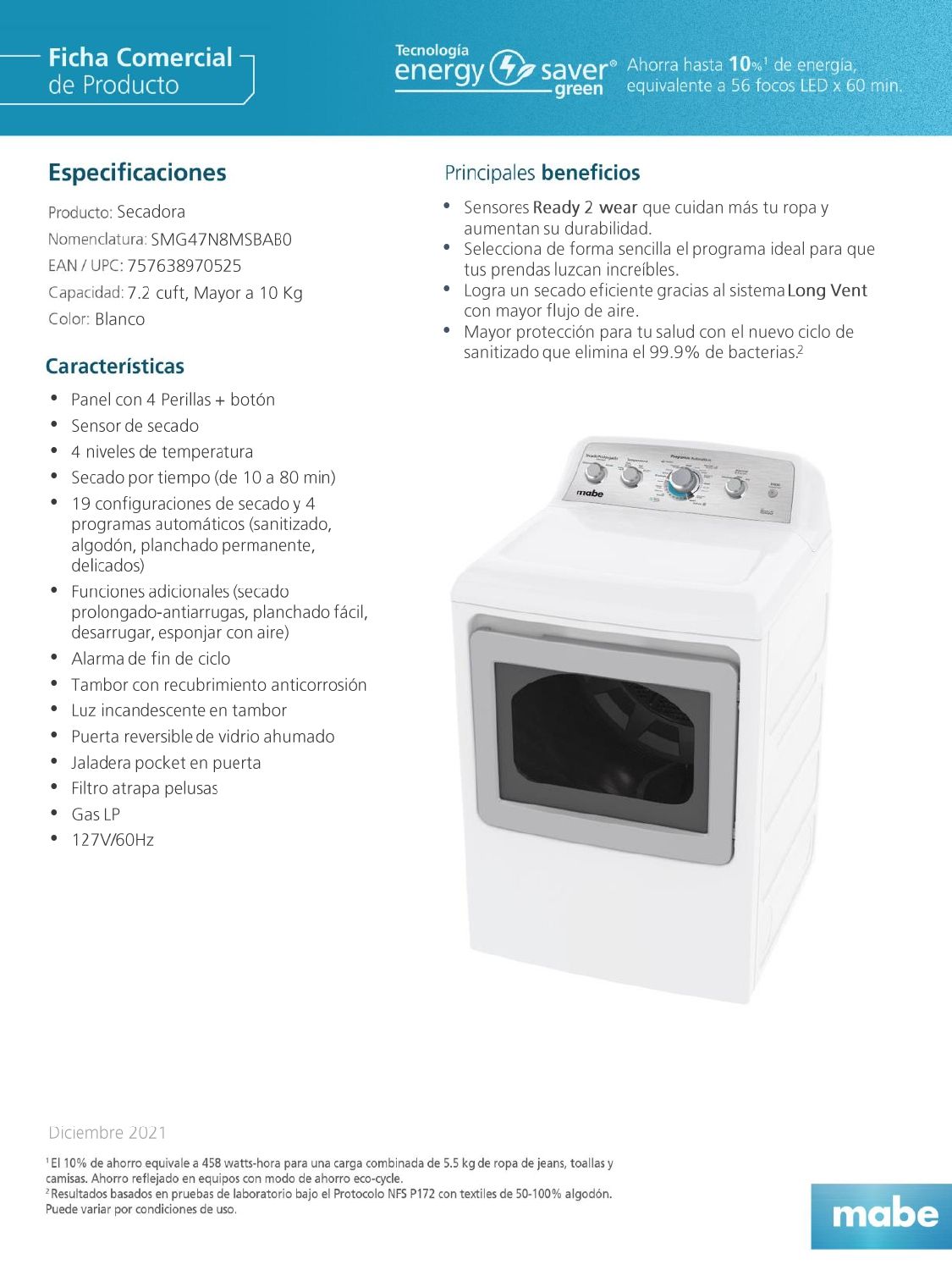 Secadora Ropa Gas MABE SMG47N8MSBAB0 22Kg