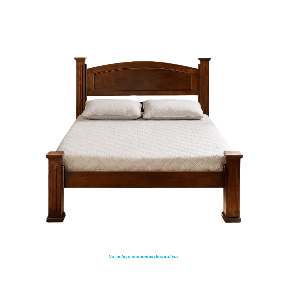 Cama matrimonial, estilo respaldar media luna que le da un aspecto moderno y elegante, en madera pochote que te ofrece durabilidad y soporte. Peso soportado 200Kg