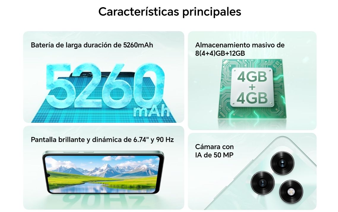 ProcesadorMediaTek Helio G81, arquitectura Octa-Core (2×A75 @2.0GHz + 6×A55 @1.7GHz)