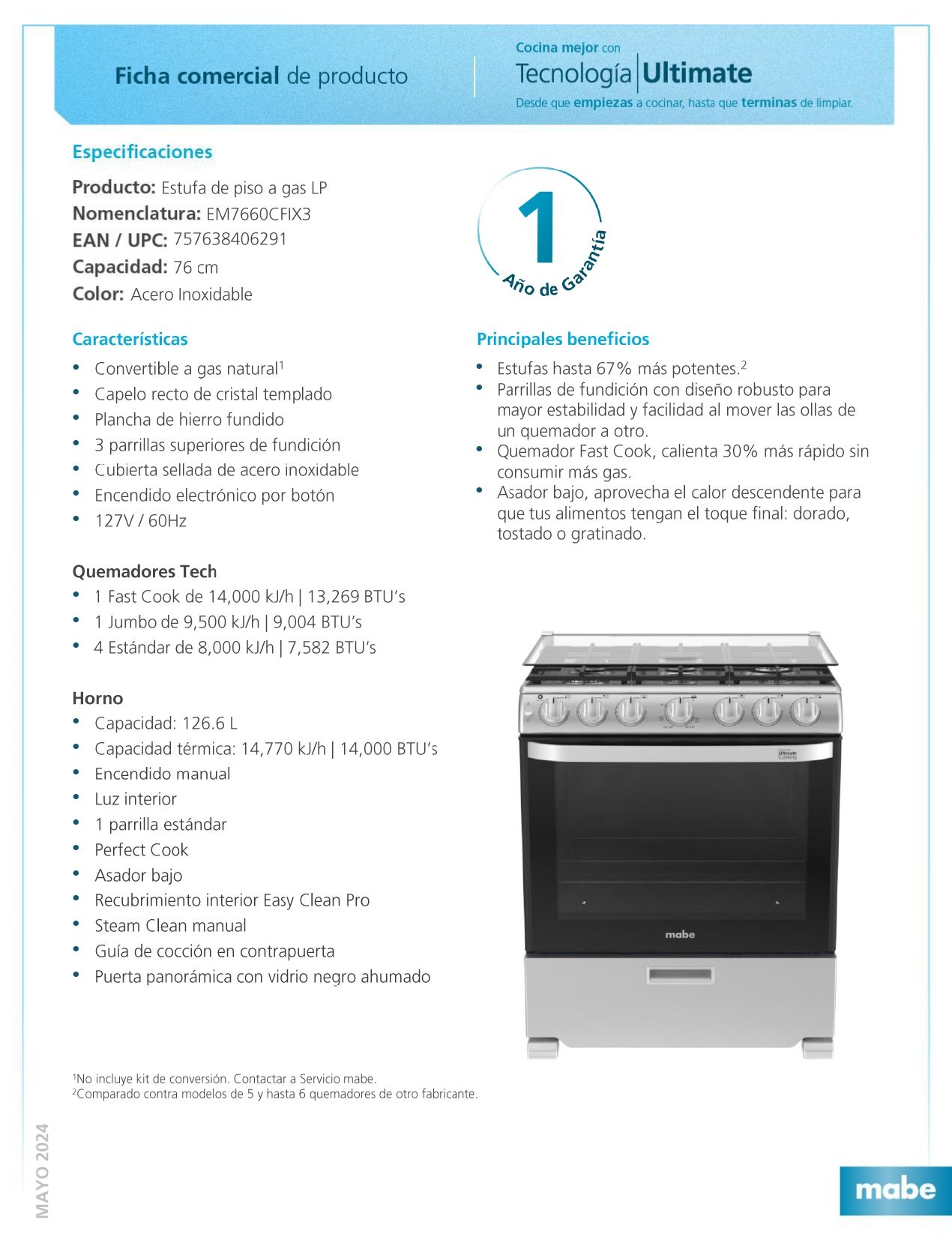 Tipo Quemador 4 estándar + 1 jumbo + 1 potente