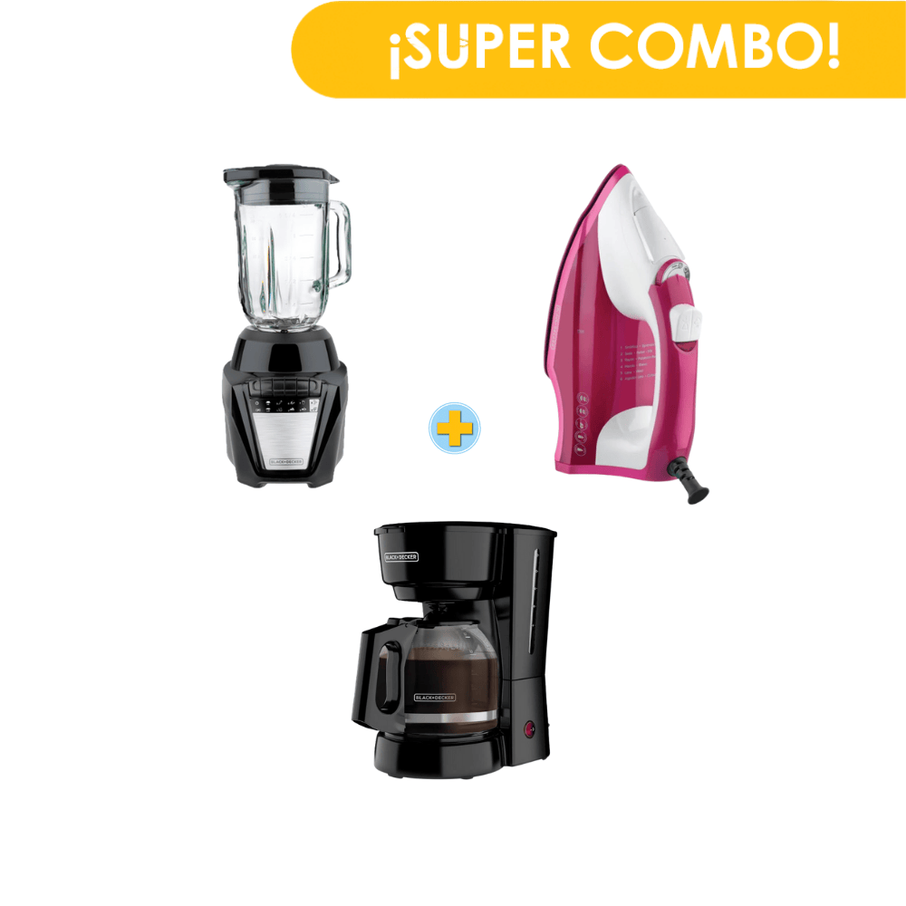 Combo B&D Licuadora BL0876-1BDLA + Cafetera CM0916B 12 Tz + Plancha IR1850