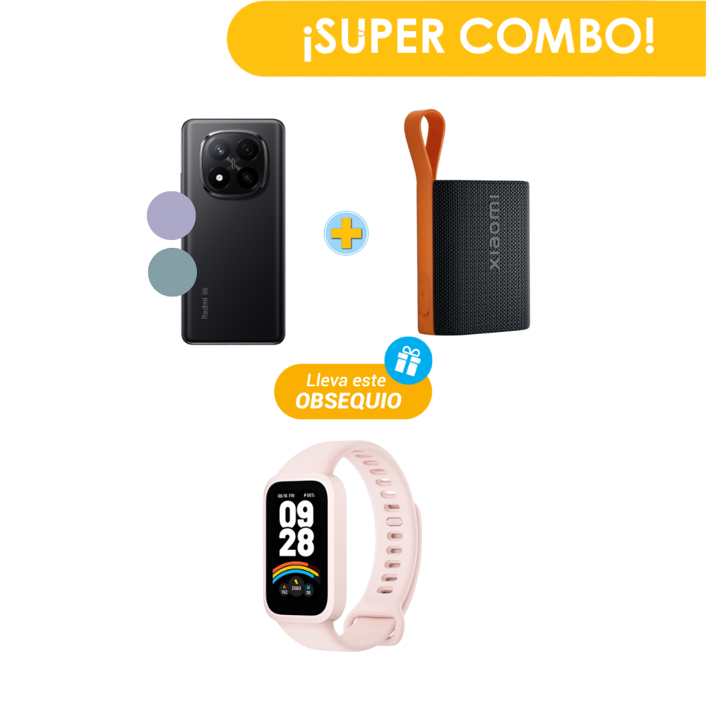 Combo Escolar Celular XIAOMI Redmi Note 14 Pro+ 5G 256GB + Parlante XIAOMI Sound Pocket MDZ-37-DB Negro + Reloj XIAOMI Smart Band 9 Active