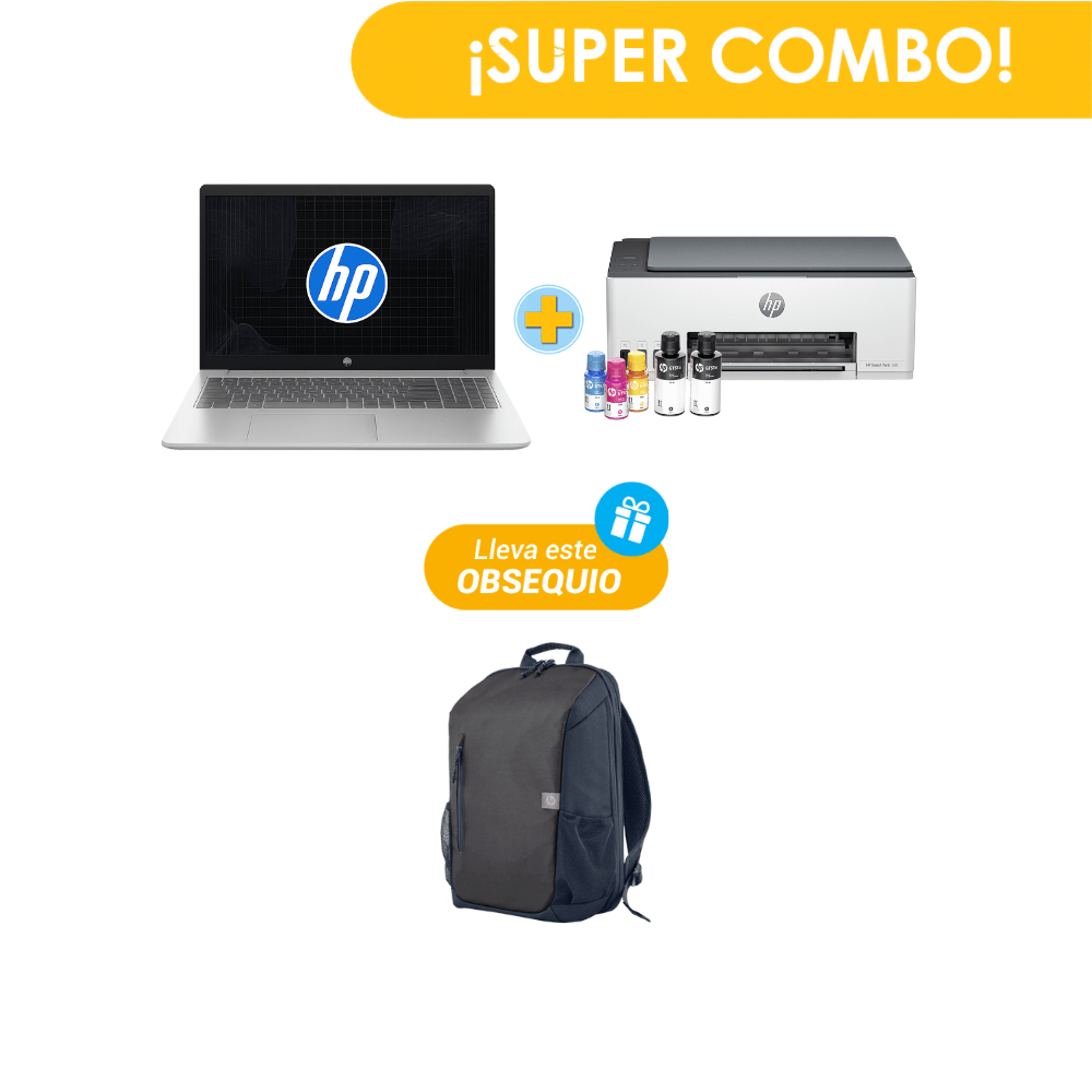 Combo Escolar Computadora Portátil HP 15-FC0250LA + Multifuncional HP Smart Tank 580 + Mochila