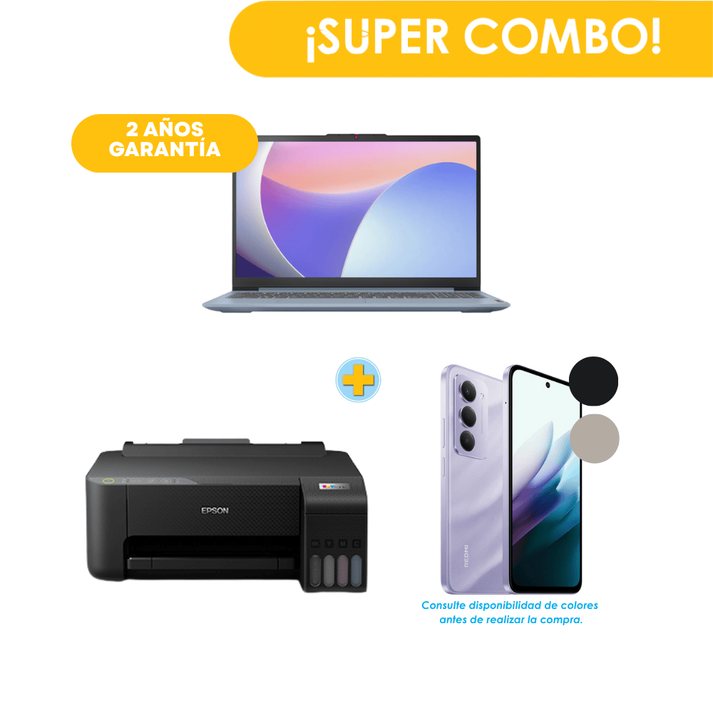 Combo Escolar Computadora Portátil LENOVO IdeaPad Slim 3 15ITN9 + Impresora EPSON L1250 Ecotank + Celular XIAOMI Redmi 15 256GB