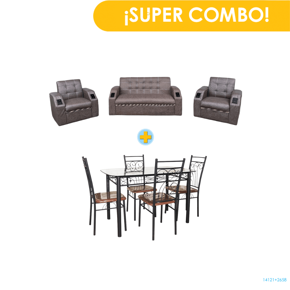 Combo Juego Sala Divani Sara 3-1-1 + Juego de Comedor TOKOA CO-4000