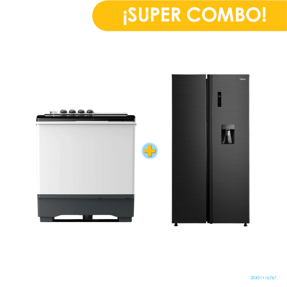 Combo MIDEA Refrigeradora MDRS710FGM28W 20" + Lavadora Semi-Automática MT100W220/W 22Kg