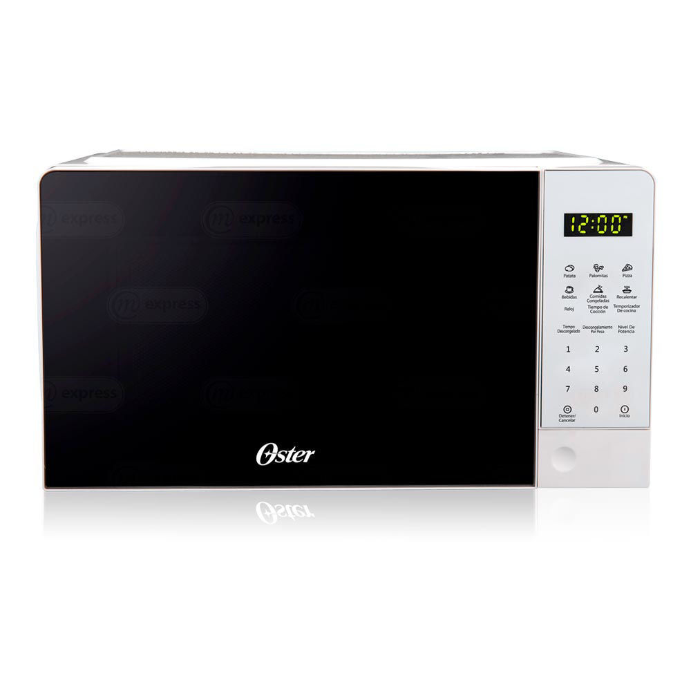 Este maravilloso microondas Oster está fabricado con un diseño blanco elegante, actual y estilizado. Cuenta con 700 watts de potencia, función de descongelado, puerta de vidrio, apertura por botón, capacidad de 20 litros, 0.7 pies cúbicos de espacio útil