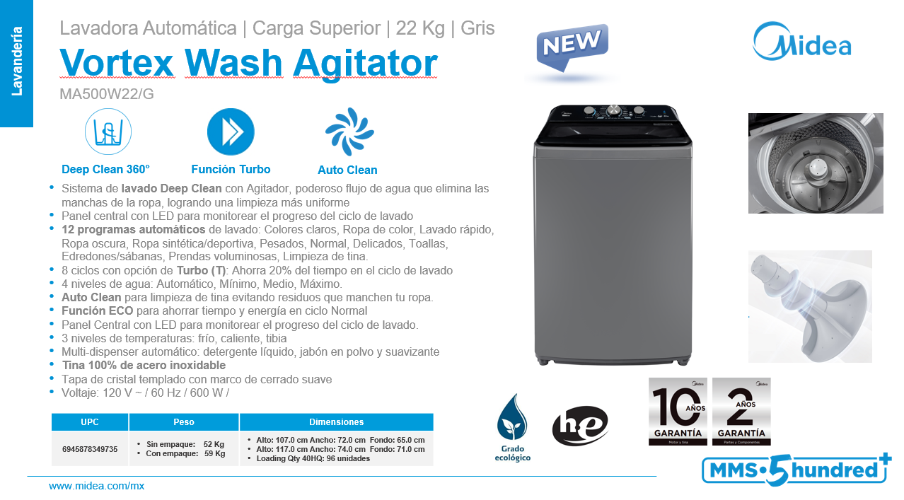 Lavadora Automática MIDEA MA500W22/G 22Kg