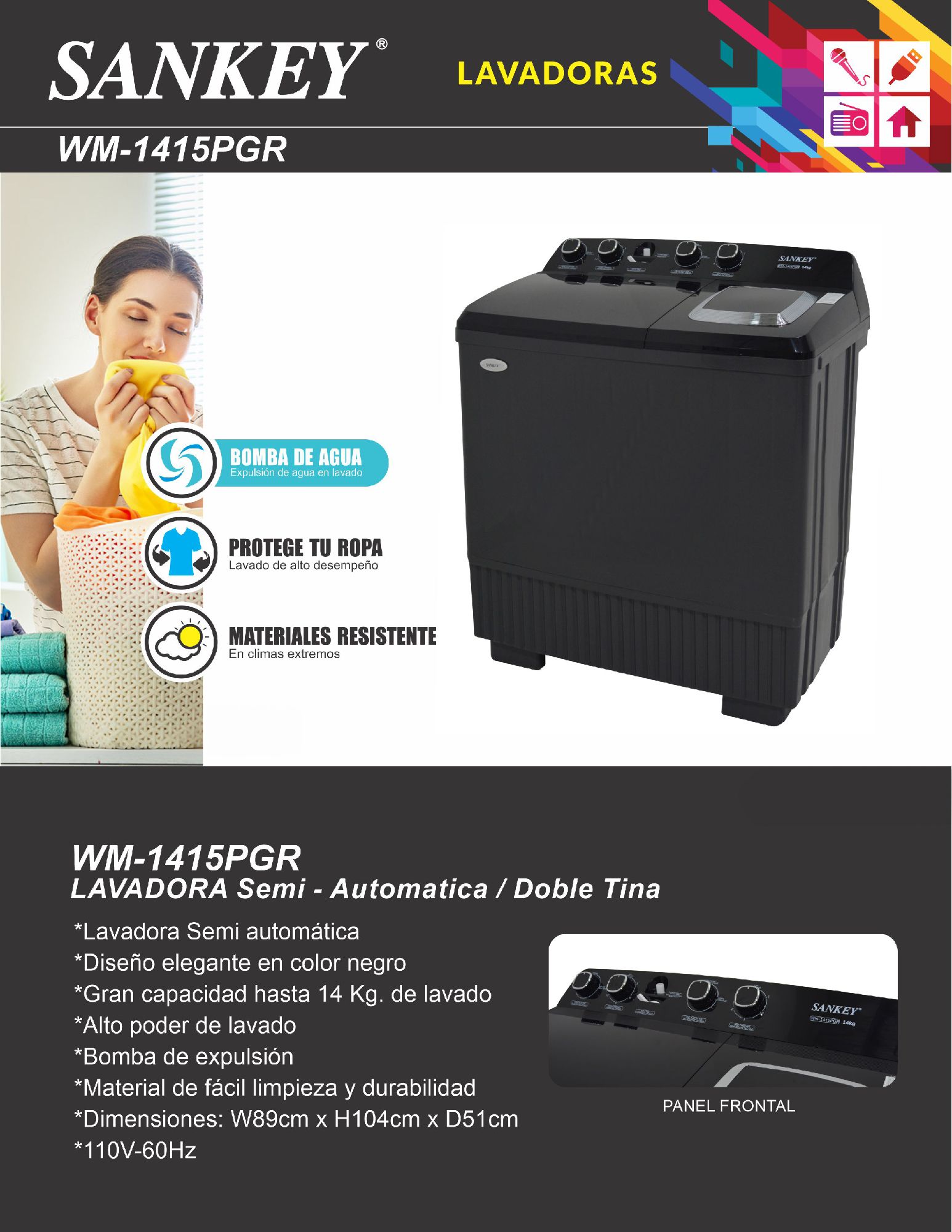 Lavadora Semi SANKEY WM-1415PGR 14Kg Negro