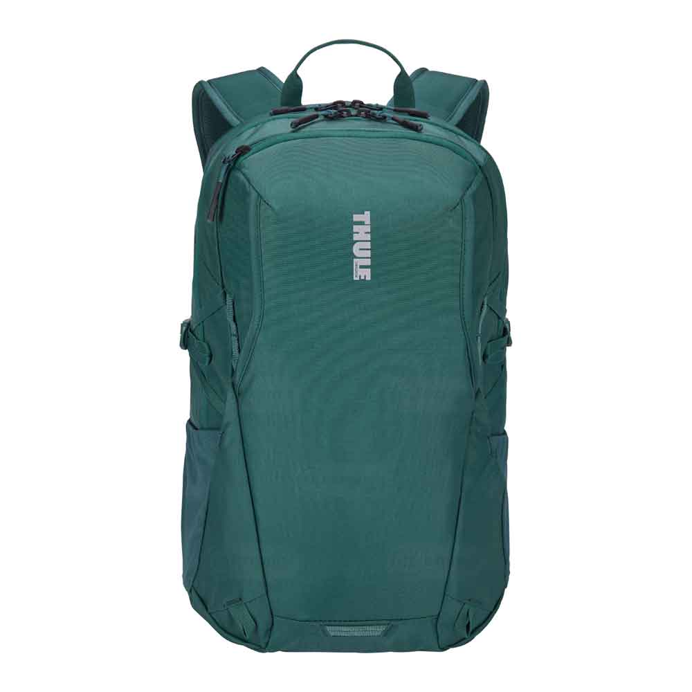 Los bolsillos laterales exteriores con malla se estiran para almacenar una botella de agua, un cargador o un paraguas