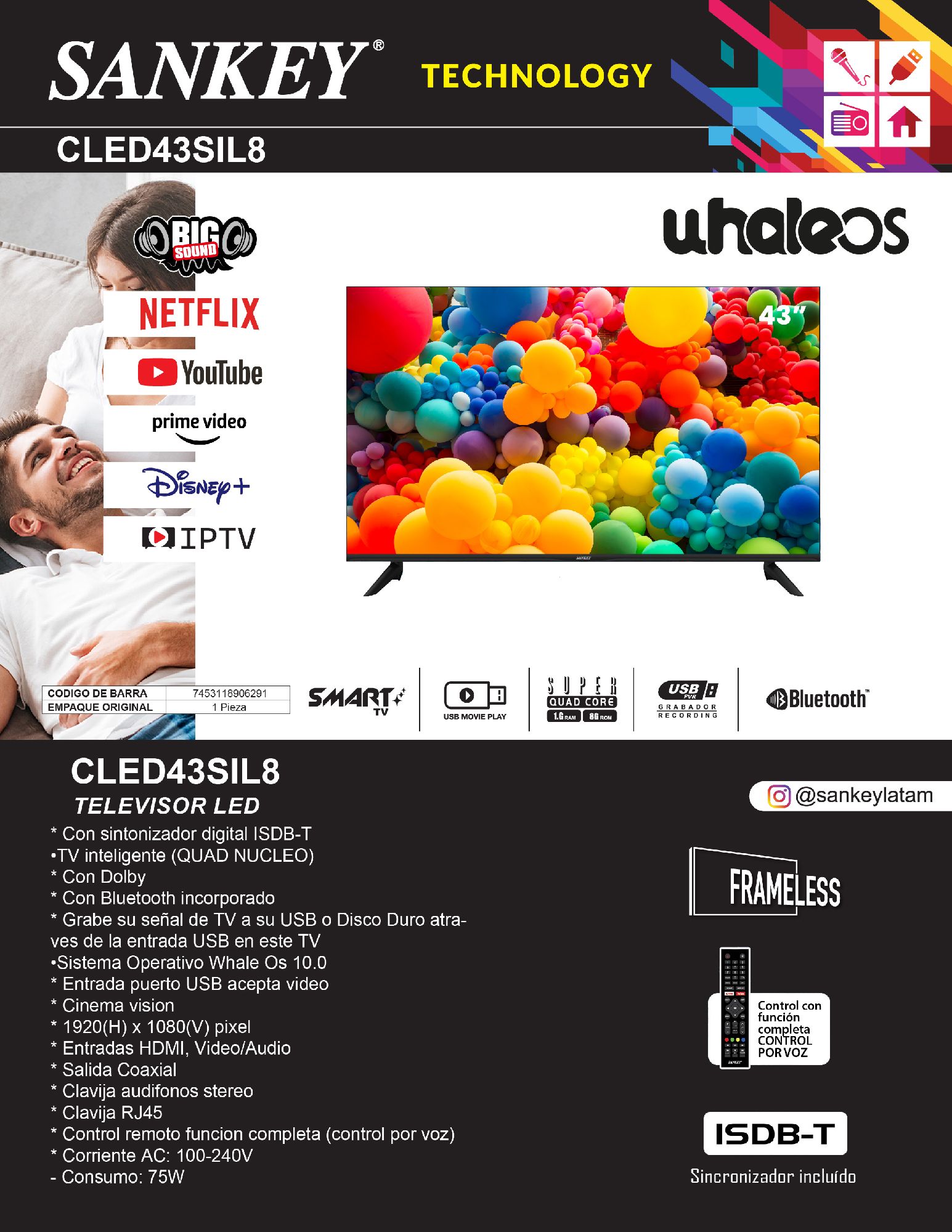 Pantalla SANKEY 43" CLED-43SIL8 Smart TV WhaleOS