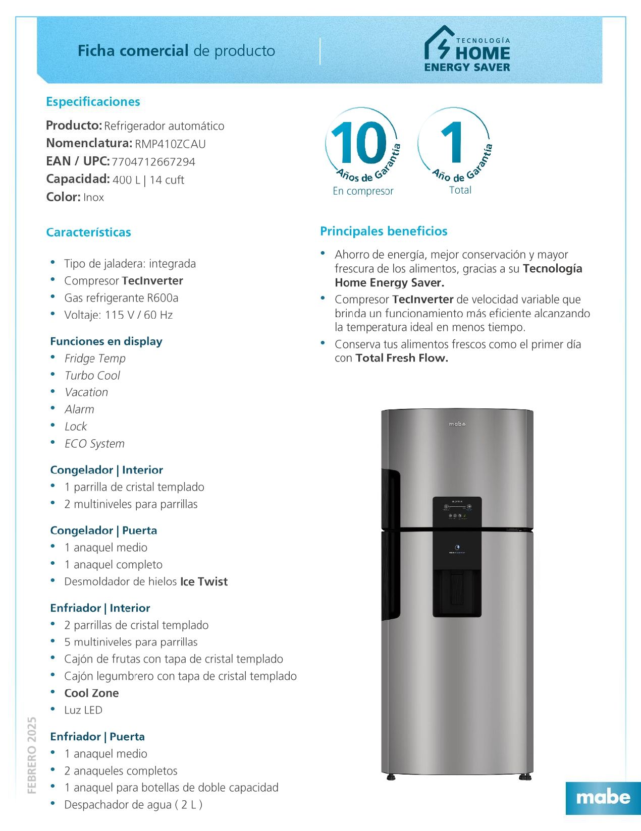 Refrigeradora MABE RMP410ZCAU 14 Pies Inoxidable